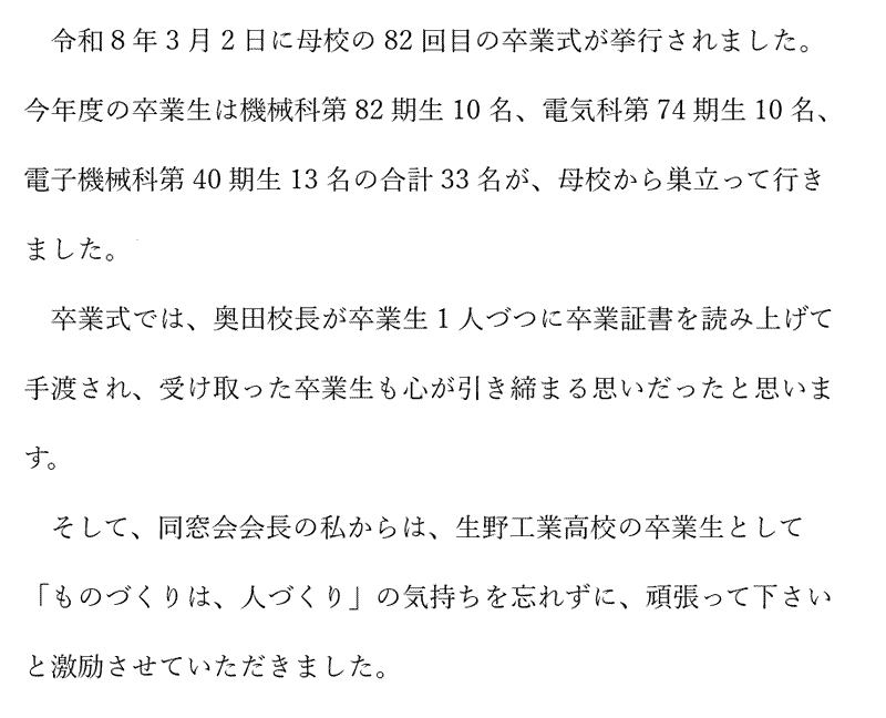 猛暑の候、同窓会の皆さまにおかれましてはますますご盛栄のこととお慶び申し上げます。